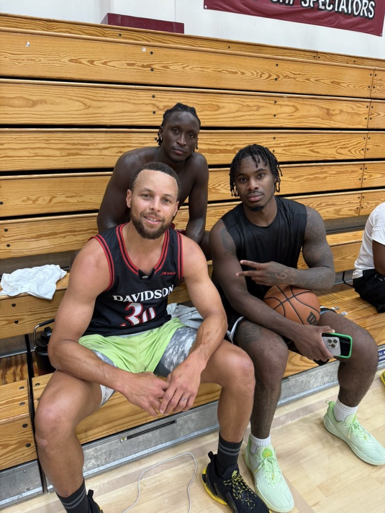 在社交媒体上晒出了自己和斯蒂芬-库里、维克托-奥拉迪波一起训练的动态。