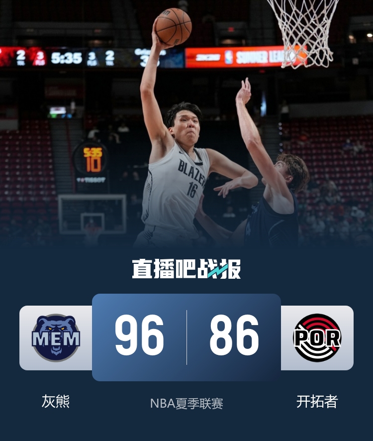 🏀夏联-杨瀚森10+5+3+1帽 韦尔斯23+7 开拓者不敌灰熊