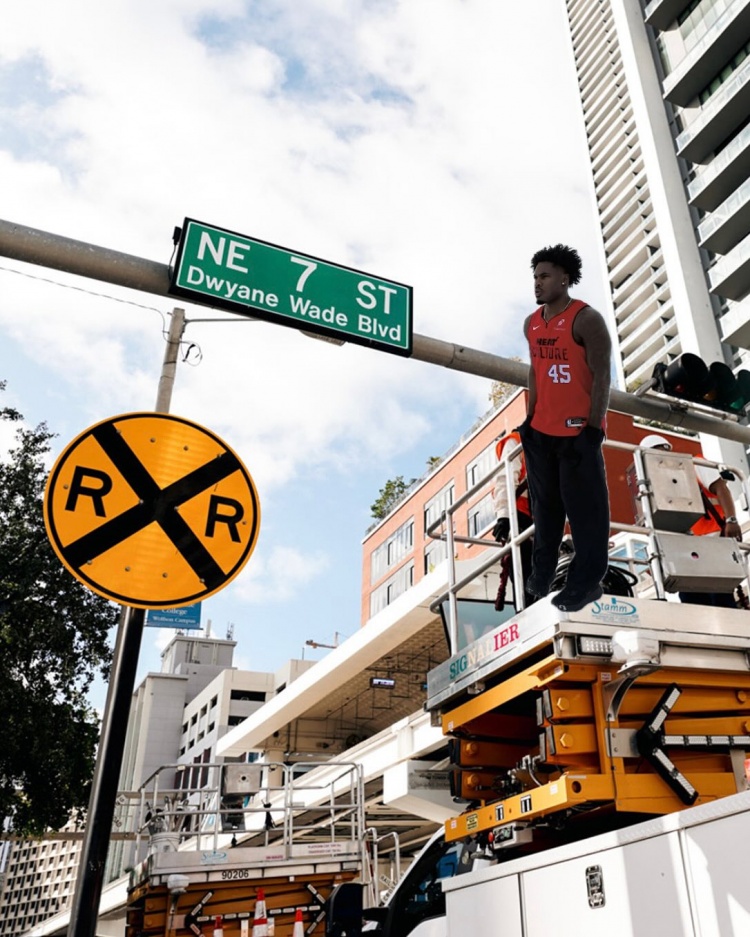 而热火官方恶搞了自家球员一把,把米切尔的人像P到了各个景点,并配文:“下一站去哪?”