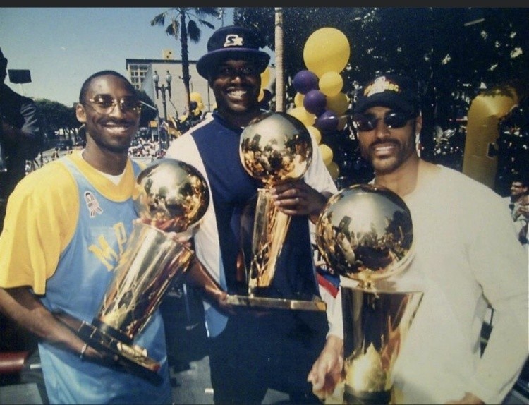 “哦,你们想包夹我?那我就把球传出去投三分。这就是我们湖人赢得所有冠军的方式。让我打,让科比打,然后传球给福克斯(下图最右)或布莱恩-肖,”奥尼尔说。