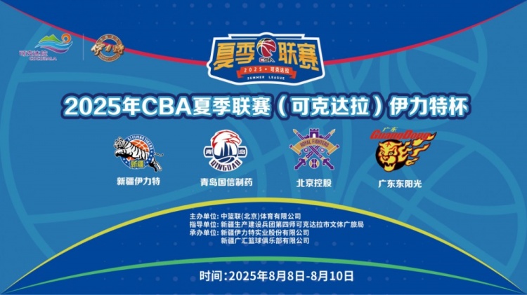 热血盛夏,篮球不息!2025年CBA夏季联赛(可克达拉)伊力特杯正式定档8月8日-10日!连续三晚,每晚黄金时段,锁定可克达拉市宏远全民健身中心!