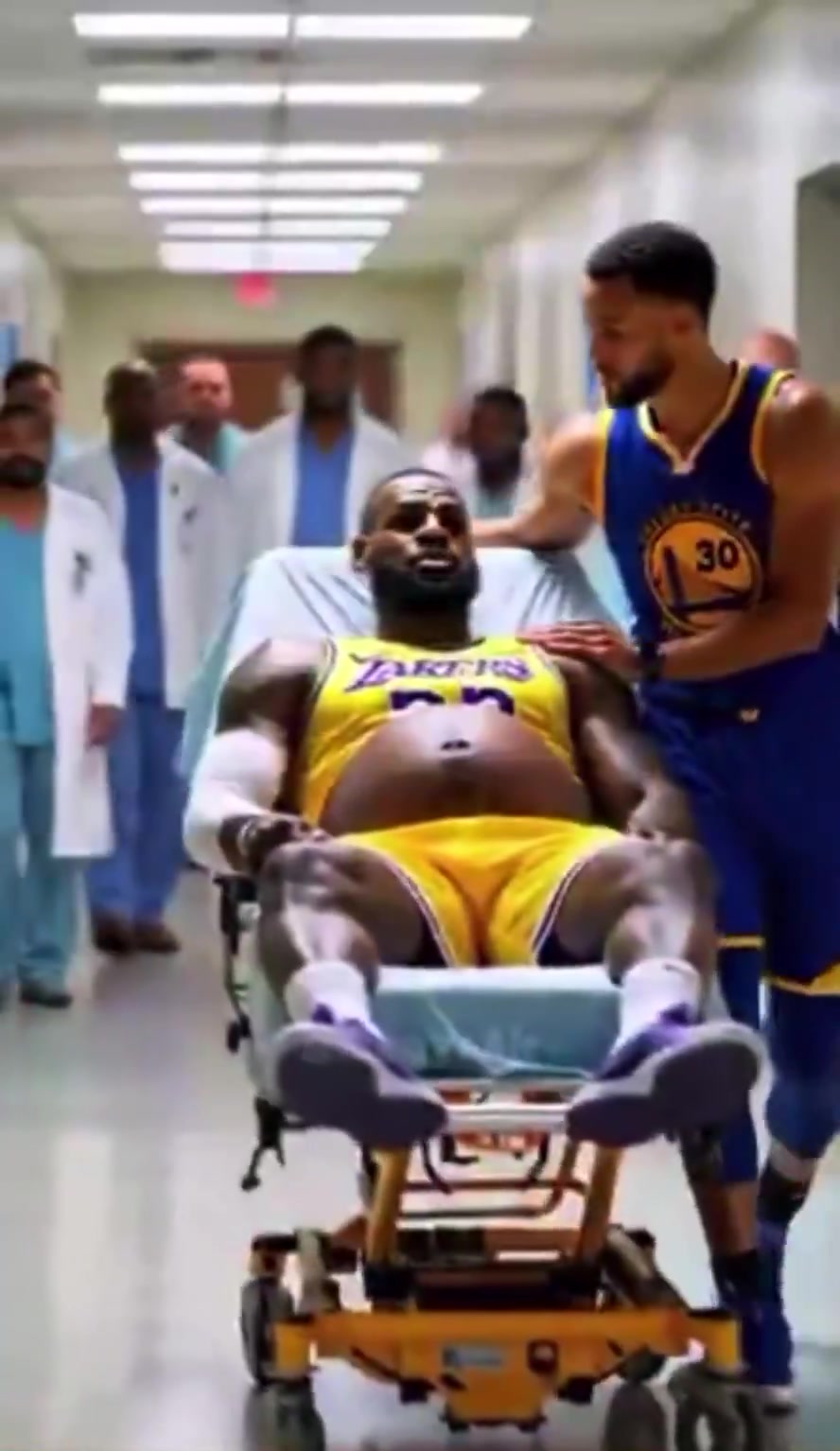 在詹姆斯的AI怀孕视频中,有一则是詹姆斯怀了库里的孩子,结果生出了一个像哈登的宝宝,而门外的哈登发出了小卡的经典尬笑。