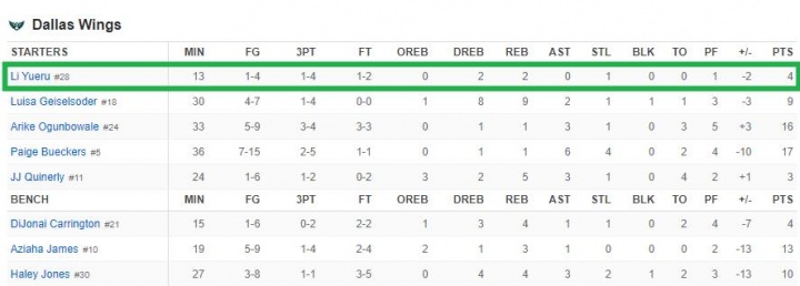 今天,李月汝仅出战13分钟,出手4次全是三分球,投中1球,罚球2中1,拿到4分2篮板1抢断。