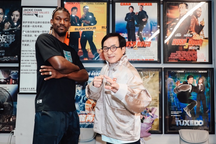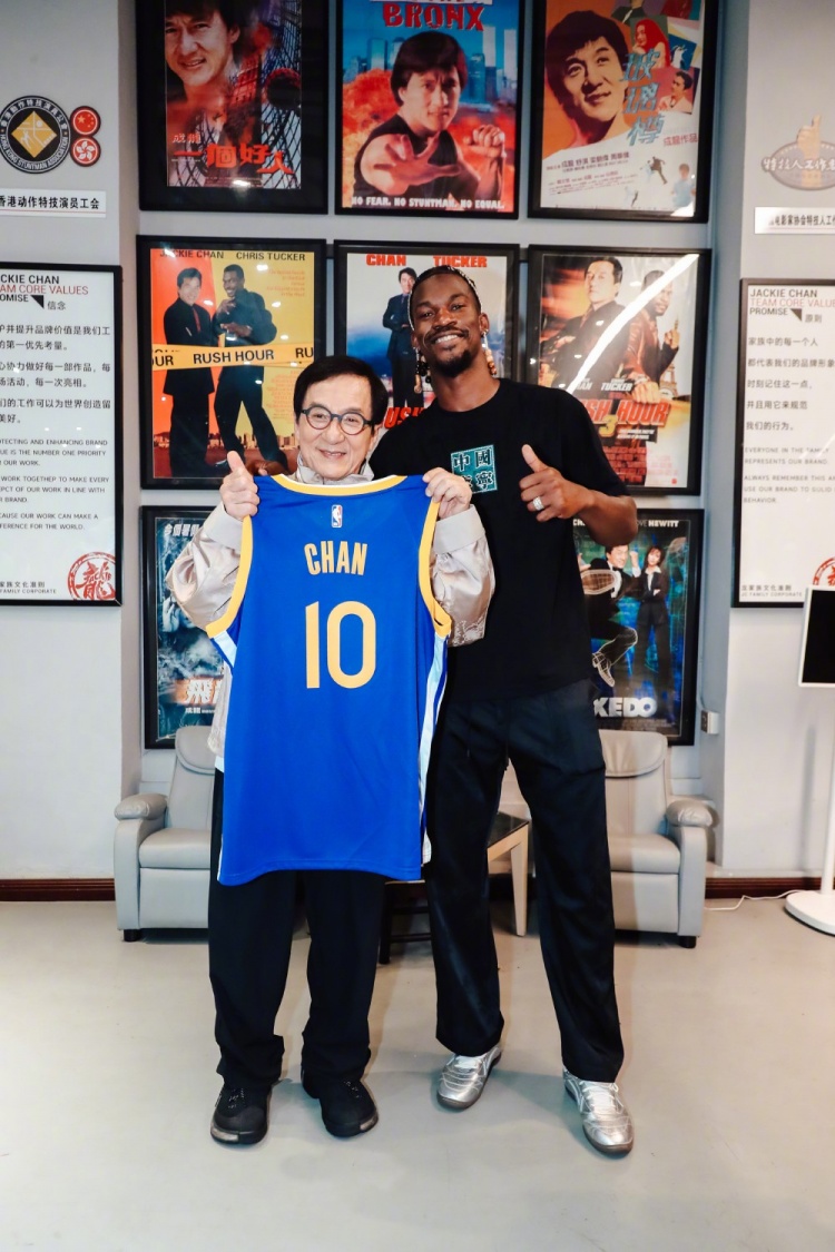 勇士官博晒出巴特勒与成龙的多张合照,后者获赠写有自己名字的10号勇士球衣。