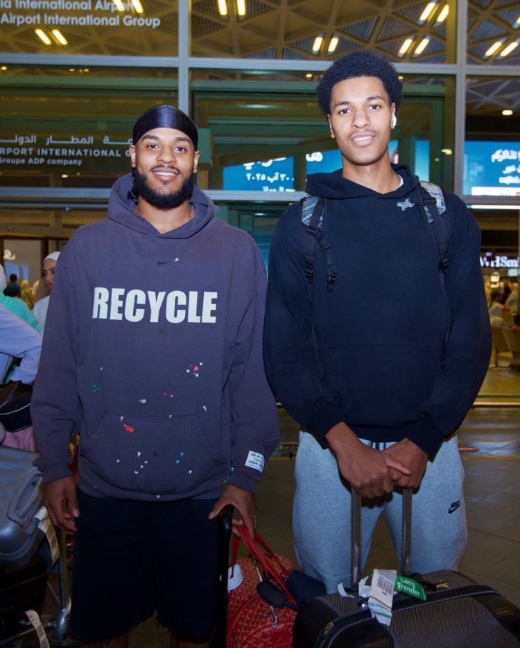 从左至右为奥拉朱旺的两个儿子阿齐兹和马利克、奥拉朱旺、肯尼-史密斯的儿子马洛伊、肯尼-史密斯