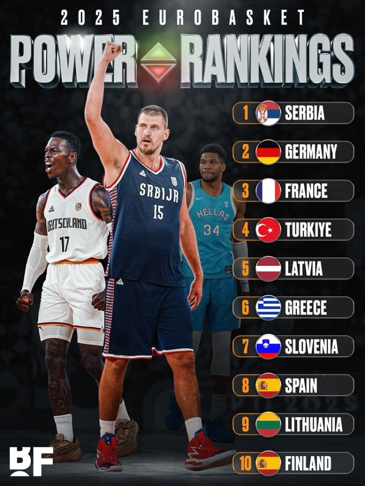 08月07日讯 今日,知名媒体B/F发布了欧锦赛的各国实力排名(如上)。
