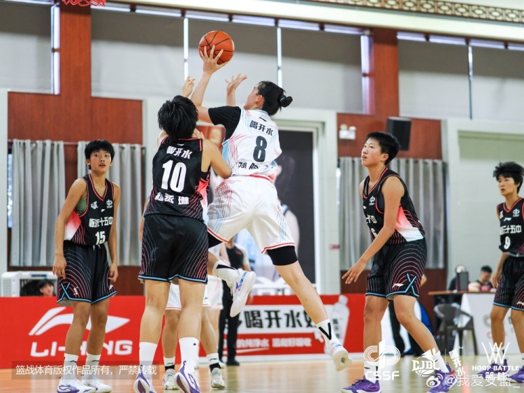 其中西安陆港初级中学主力刘馨月缺战,杭十四附一度领先28分,轻松取胜。南雅中学攻防两端表现出色,将对手得分限制在40分以内,挺进四强。清华附中展现出卫冕冠军的强大实力,32分大胜临沂三十五中。深圳二实验与重庆巴蜀中学战况激烈,重庆巴蜀中学王咨懿和王媛媛“双王”合砍48分,在末节锁定胜局。