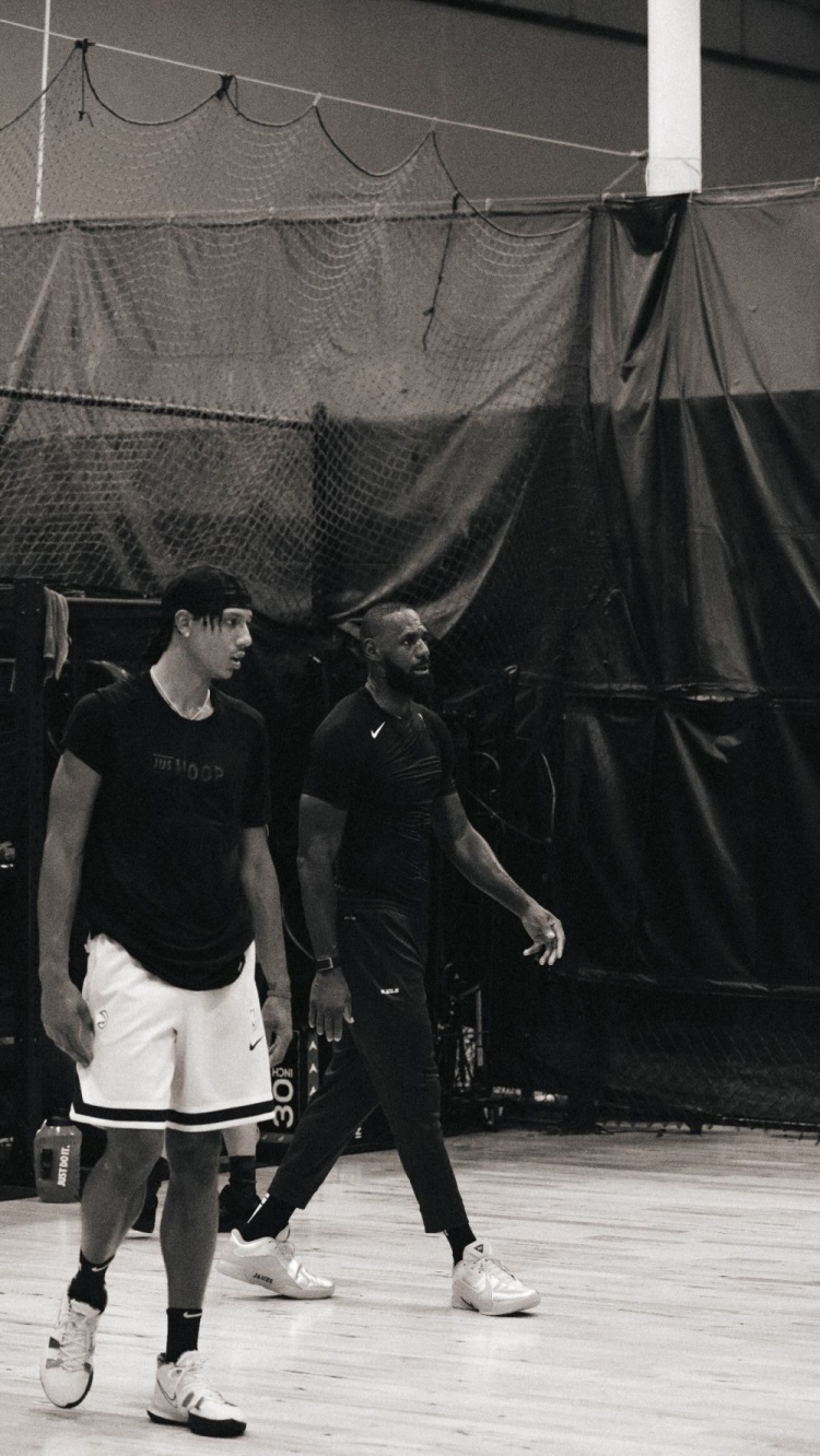 约翰逊晒出一组个人训练照,其中包括一张与湖人前锋詹姆斯的训练合照。