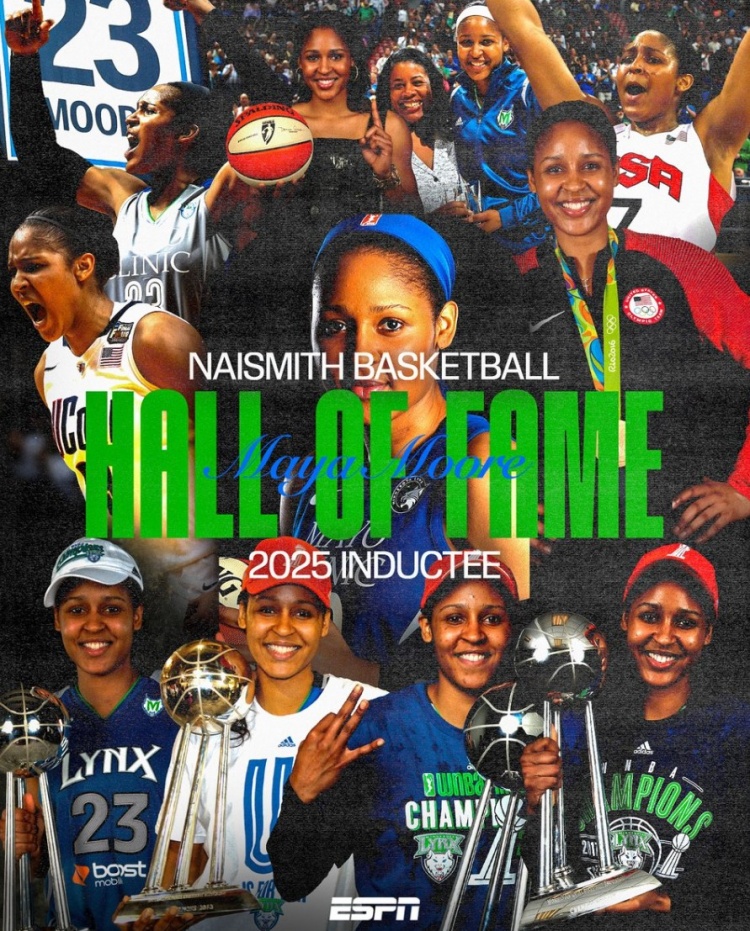 9月7日讯 今天,WNBA传奇球星玛雅-摩尔正式入选奈史密斯名人堂。