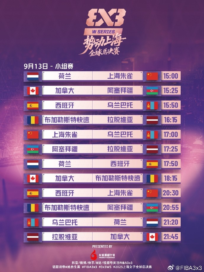 9月10日讯 2025赛季FIBA3x3女子系列赛年度总决赛将于9月13日至14日在上海举行。
