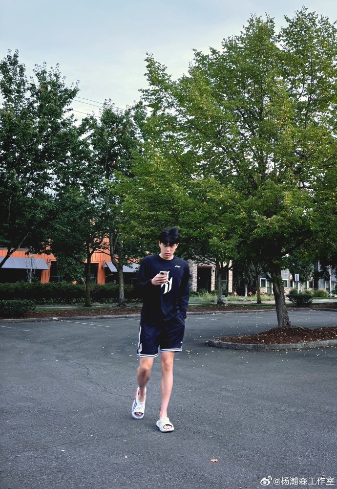 杨瀚森工作室官博晒小杨近照:波特兰的秋🍂