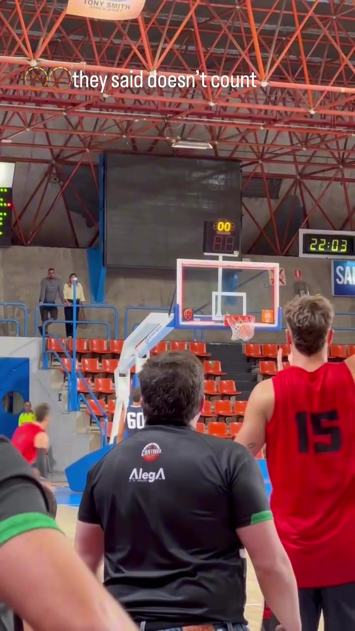 画面中,当时比赛还剩下0.8秒,余嘉豪所在球队落后对手一分,他接应队友边线传球,转身抛射压哨打进,却被裁判吹掉。