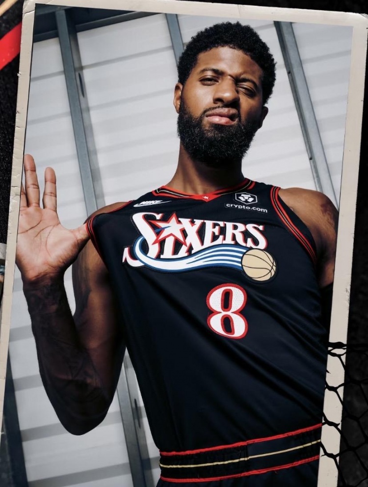 还挺帅!乔治中文社媒晒自己身穿76人经典黑色球衣照:英雄归来