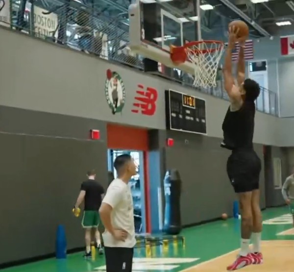由视频可见,塔图姆已经可以在原地起跳完成双手扣篮,塔图姆配文写道:“一定是鞋子的原因👀🔥。”
