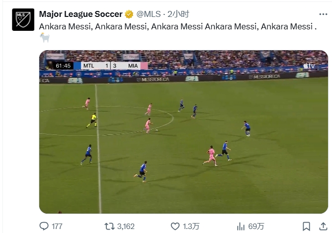 07月06日讯 今日进行的美职联比赛,梅西攻入一记奔袭半场1v7的经典进球,美职联官方直呼Ankara Messi🐐!