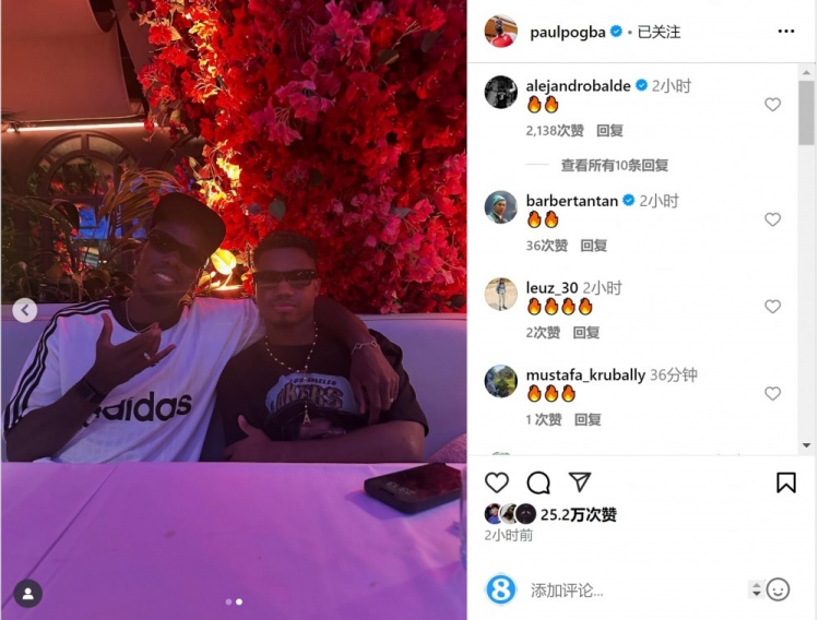 新队友!博格巴社媒晒与法蒂合照,多位球员点赞