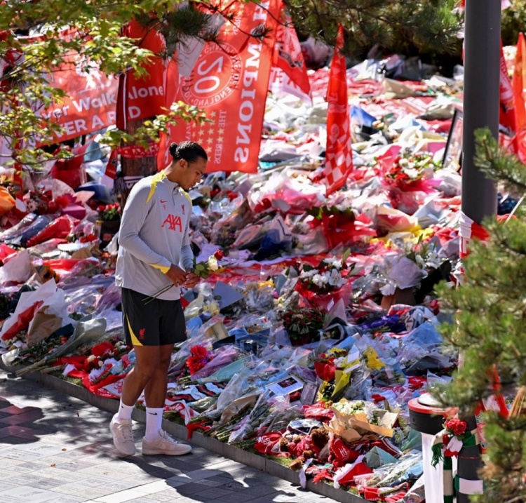 利物浦全队在安菲尔德场外缅怀若塔和安德烈-席尔瓦