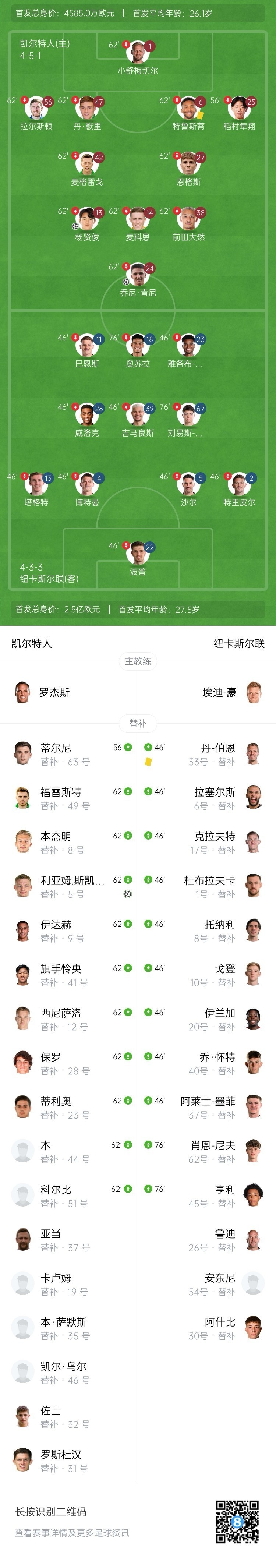 凯尔特人4-0大胜纽卡,恩格斯、肯尼、杨贤俊、斯凯尔斯各入一...