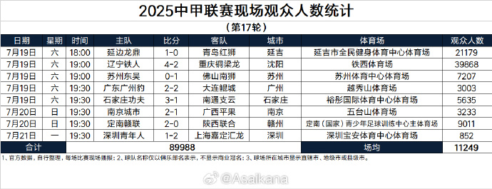 07月21日讯 德转管理员朱艺今日在微博确认,上周六中甲第17轮,辽宁铁人主场4比2力克重庆铜梁龙的比赛是中甲联赛本赛季至今观赛人数最多的比赛,现场观众达到39868人!