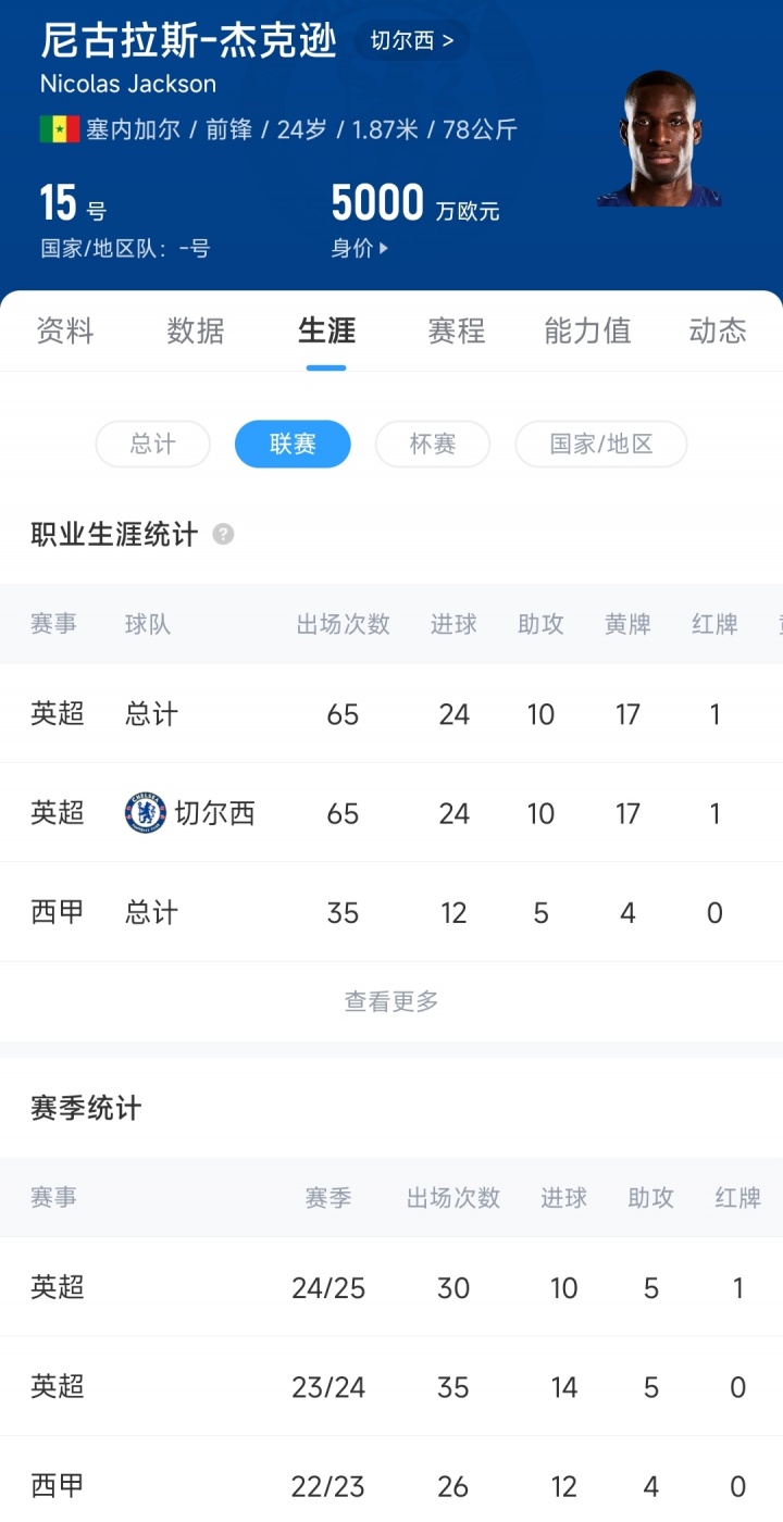 鉴于杰克逊在英超的进球数据,切尔西认为他的价值高于埃基蒂克。杰克逊在英超两个赛季中65场攻入24球,埃基蒂克同期在德甲47场打入19球,不过他比杰克逊年轻一岁。