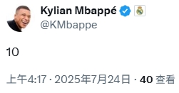 ⏳自宣?姆巴佩社媒发数字“10”,昨日多家媒体称他将穿皇马10号