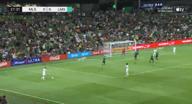 第28分钟,苏里奇头球一点首开纪录,博安加助攻,美职联全明星1-0取得领先。