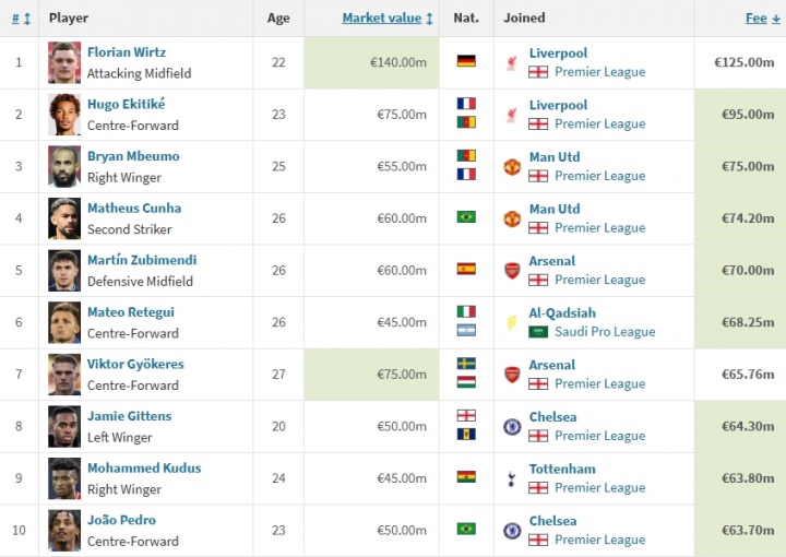 你主队表现如何❔夏窗TOP20转会:维尔茨唯一破亿,英超疯狂霸榜