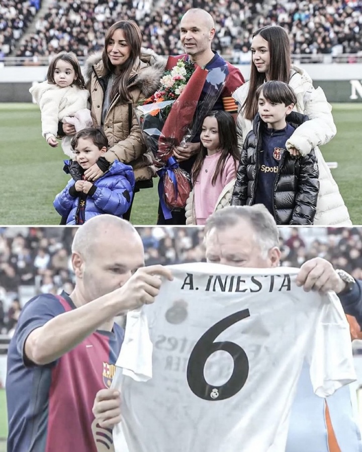 此前在日本的致敬赛事,皇马方面向伊涅斯塔赠送了印有他名字和6号的球衣,并送上了鲜花表示敬意。