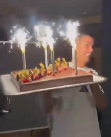 但这一天却因C罗而成为难忘时刻——他亲自为厨师送上了生日蛋糕,全队也齐声唱起了生日快乐歌。这位寿星流下了感动的眼泪,C罗也送上了拥抱祝贺。随后众人在吹蜡烛仪式上大笑起来。