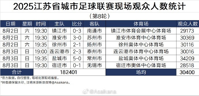 2025江苏省城市足球联赛现场观众人数统计(第8轮)
