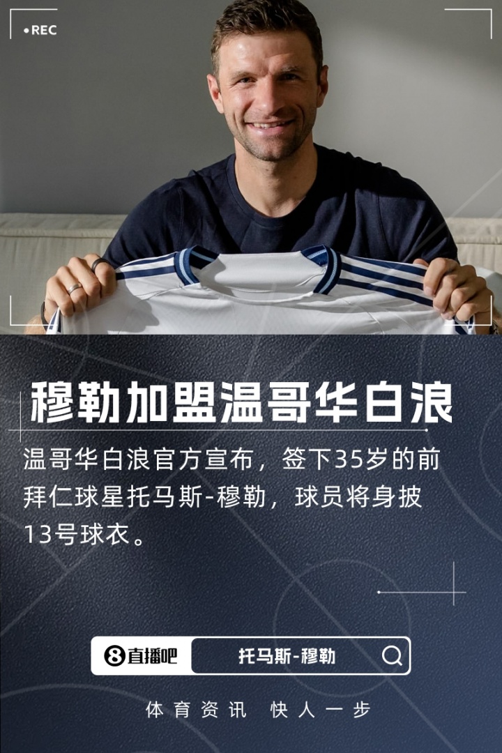 温哥华白浪官方宣布,签下35岁的前拜仁球星穆勒,他将身披13号球衣。