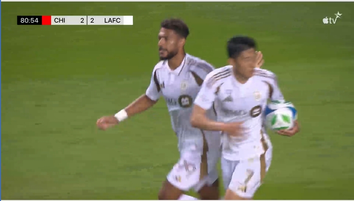 08月10日讯 美职联第26轮,芝加哥火焰vs洛杉矶FC。下半场第77分钟,替补登场的孙兴慜奔袭突入禁区倒地,VAR判罚点球,博安加主罚命中帮助洛杉矶2-2扳平。