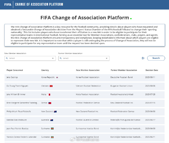 韩国完成了卡斯特罗普(Jens Castrop)的转换代表队手续,他今后将代表韩国国家队出战。