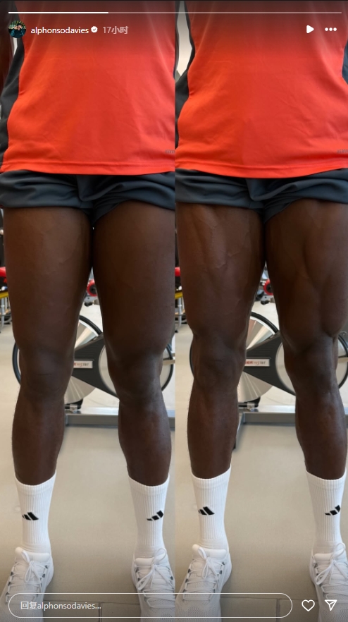 08月15日讯 拜仁后卫阿方索-戴维斯社媒晒照,图片为球员腿部的变化。