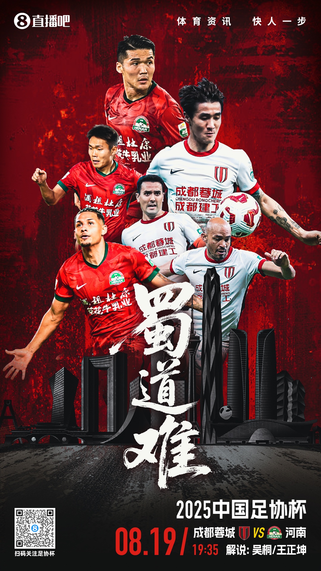 作为赛事版权方,将视频直播所有比赛场次。今晚19:35,成都蓉城将主场迎战河南,吴桐和王正坤将带来本场比赛的解说。