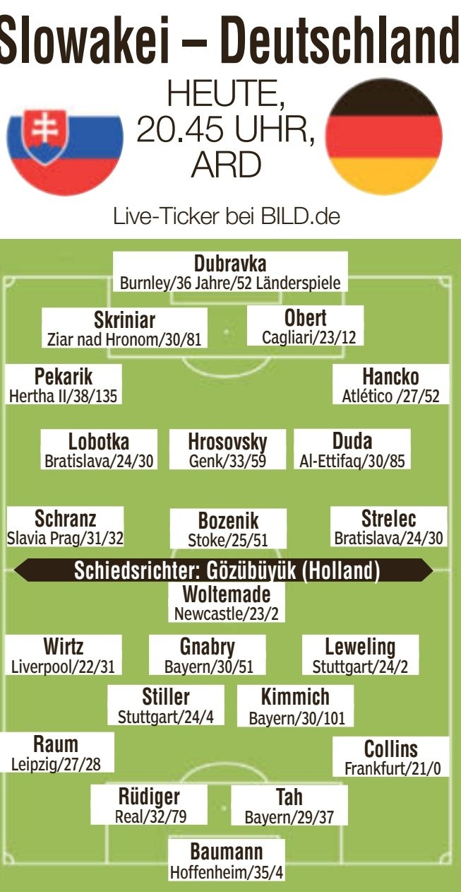 9月4日讯 北京时间明天凌晨,德国将在世预赛中对阵斯洛伐克,《图片报》预测了德国队此役的首发阵容。