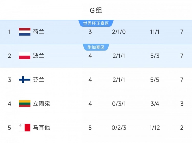 目前,荷兰队在G组2胜1平积7分,少赛1场暂居小组第一。
