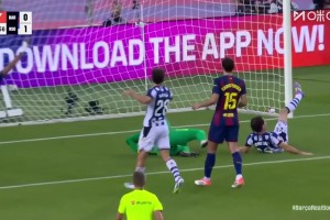 第31分钟,皇家社会策动攻势,球在经过连续传递后,巴雷内切亚禁区内左侧横传门前,奥德里奥索拉无人盯防轻松破门,皇家社会暂1-0巴塞罗那。↓