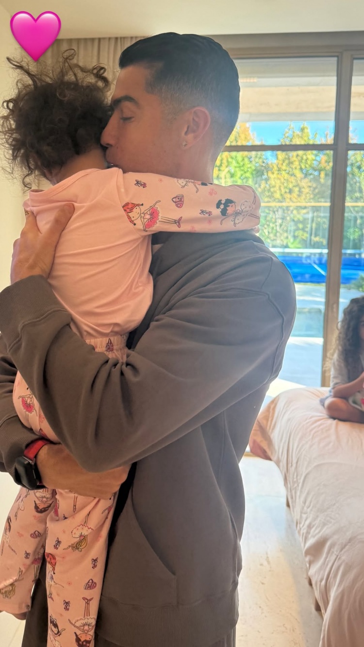 乔治娜社媒晒照分享日常生活,其中包括C罗抱孩子的照片。